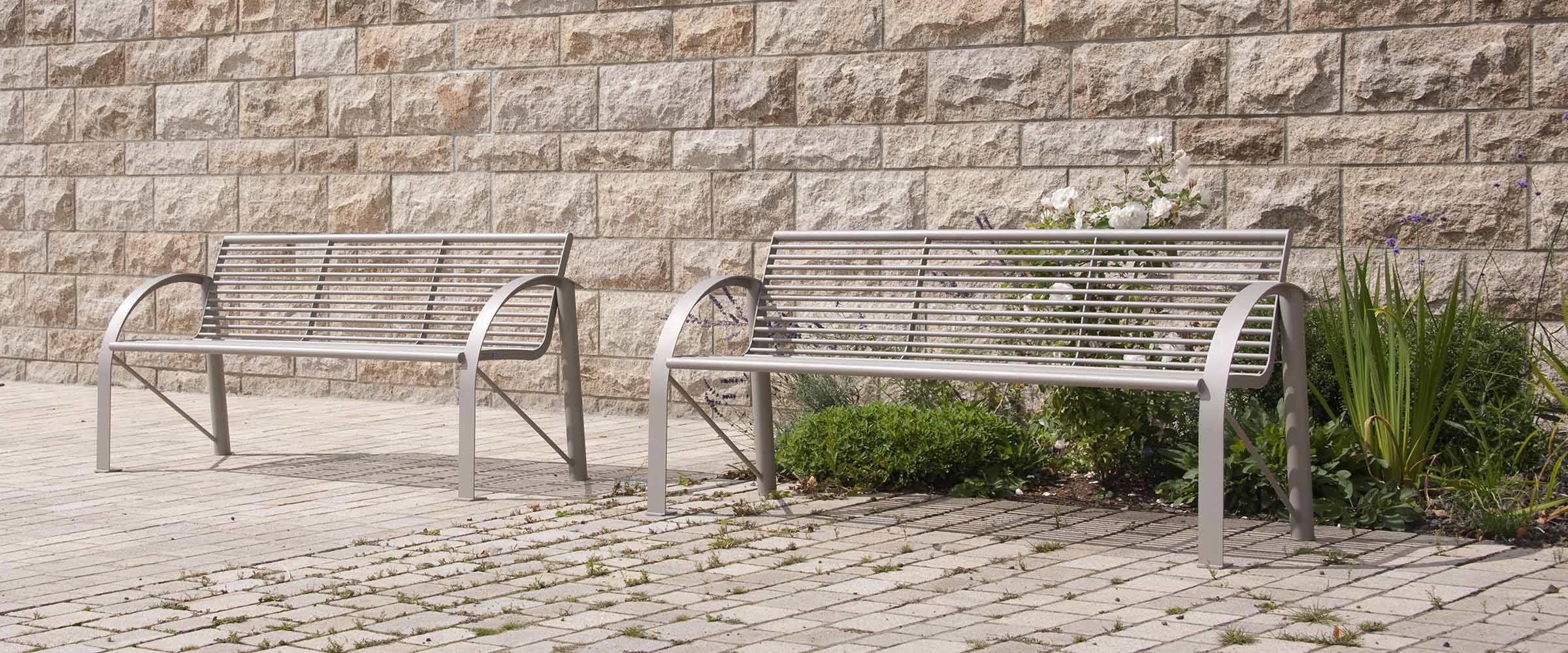 Straight-lined bodies, arches and various connecting pieces in combination with backrests make every bench a visual experience.
