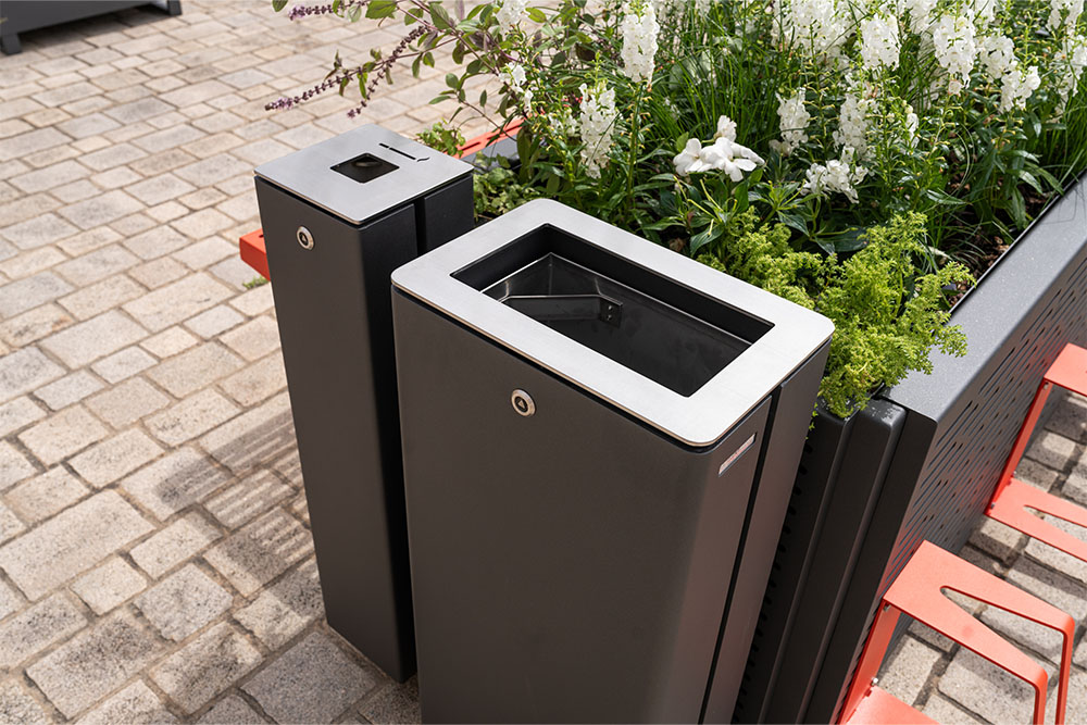 Die Abfallbehälter fügen sich dezent in das Design ein und sorgen für Sauberkeit im öffentlichen Raum.