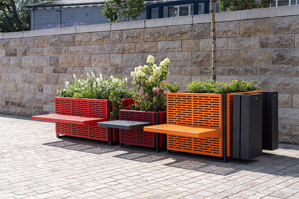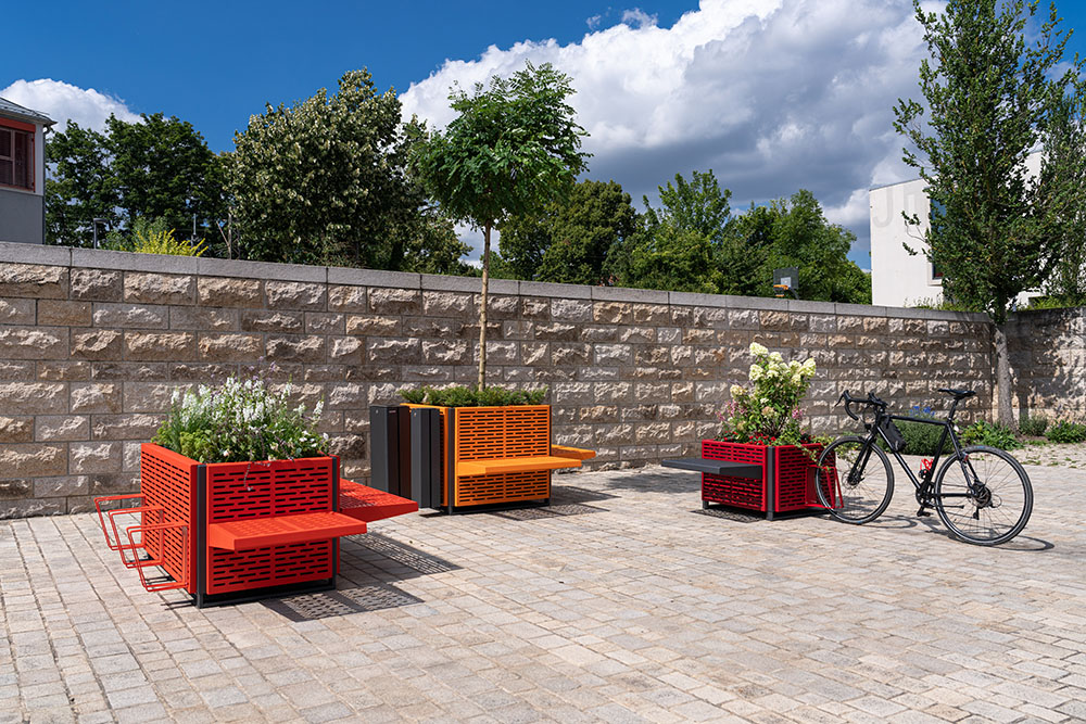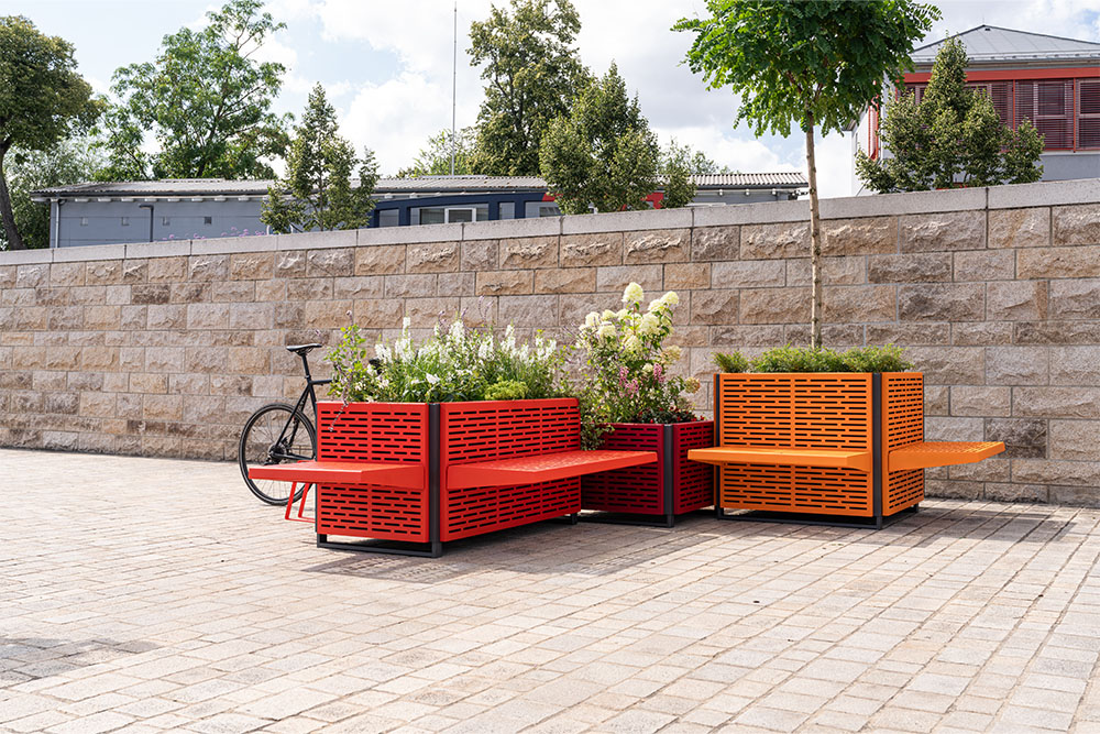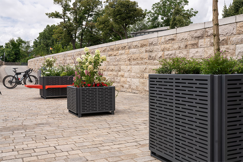 Die Sitzmodule verwandeln den Pflanzkübel in einen komfortablen Aufenthaltsort und schaffen Platz zum Verweilen.